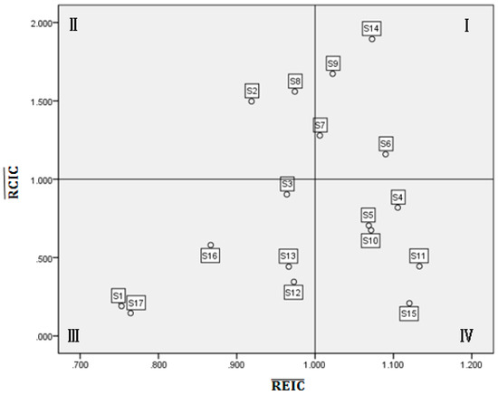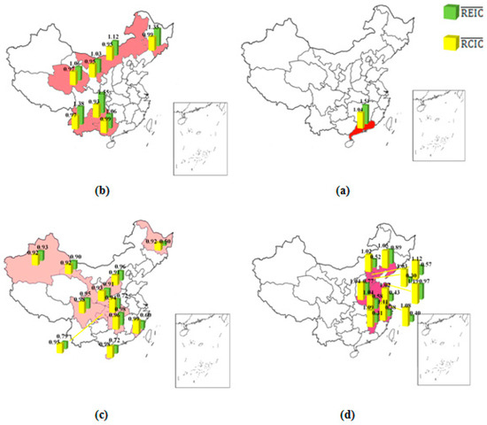 where, the / represent the mean values of REIC and RCIC of the ith sector in 30 regions. The / represent the mean values of REIC and RCIC of the rth region.