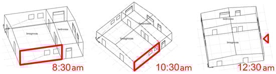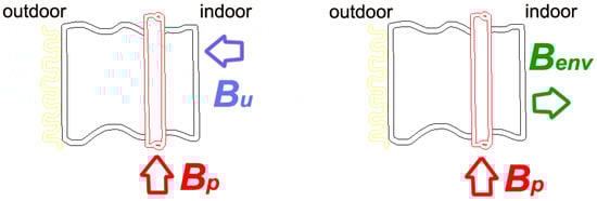 The complication of the balancing Equation (9) when applied to the building envelope is that  and  are not distinctly distinguished a priori: the spontaneous interaction with the environment, together with internal loads, is the cause of the exergy demand , which therefore has the same provenance of the term . However, the reason for having two separate contributions lies in the different steps in which the design process can be subdivided: