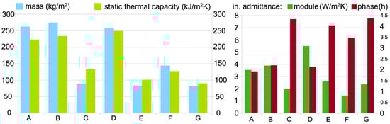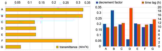 The thermal performance of the envelopes is calculated according to the European Standard EN ISO 13786 (the Italian version is []) by means of the software developed by Ursini Casalena (“UNI EN ISO 13786-Ver 2.2” [], released under the CC BY-NC-SA 2.5 licence). The indicators specified in Section 2.1 are evaluated and reported in Section 3.1.