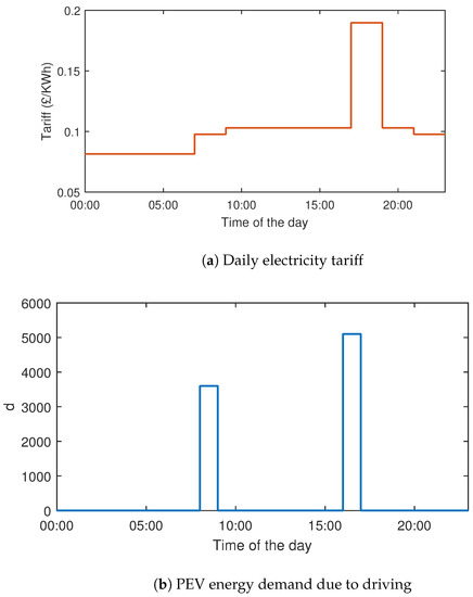 This section considers a worker who commutes to work in the morning and returns back after work. The plots of daily electricity tariff and energy demand for the trips are presented in Figure 5. The plots show that the period of energy demand corresponds to times of the day in which the electricity tariff is high (amber period), and the journey back from work in the evening is typically completed just before the peak tariff period.