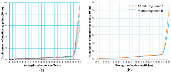 - The strength reduction method, based on the discrete element method, can automatically search for the minimum safety factor and the corresponding failure modes under the actual combination of structural planes, which is closer to a real-world situation.