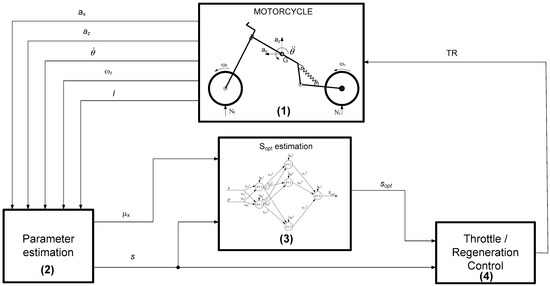 - Robinson, J.; Singh, T. eABS: Regenerative Anti-Lock Braking for Electric Motorcycles. SAE Int. J. Passeng. Cars Mech. Syst. 2013, 6, 1484–1492. [Google Scholar] [CrossRef]