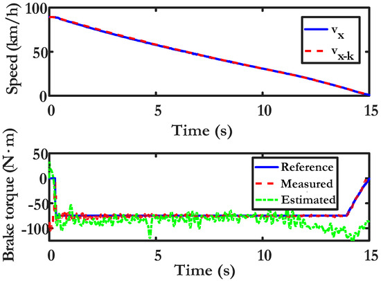 - Castillo, J.J.; Cabrera, J.A.; Guerra, A.J.; Simón, A. A Novel Electrohydraulic Brake System with Tire–Road Friction Estimation and Continuous Brake Pressure Control. IEEE Trans. Ind. Electron. 2016, 63, 1863–1875. [Google Scholar] [CrossRef]