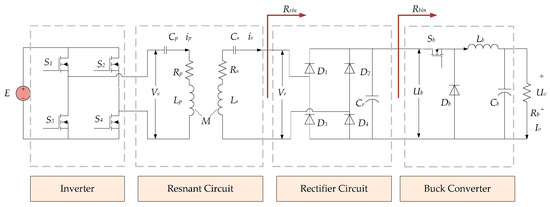 Figure 1 shows the schematic circuit of the proposed tracking topology, where the input DC voltage is given by E, Rb is the load resistance. Rp and Rs are the internal resistance of Lp and Ls, respectively. Lp, Cp constitute the primary series resonant circuit, while Ls, Cs constitute the secondary series resonant circuit. M is the mutual inductance, and satisfies (k represents the coupling coefficient). S1~S4 constitute the full-bridge inverter, while D1~D4 constitute the rectifier. Sb, Db, Lb, Cb constitute the Buck converter. Rbin and Rrin are the equivalent input impedances of the Buck converter and rectifier circuit, respectively. ip and is are the resonant currents. Vs, Vr, Ub are the input voltage of the resonant circuit, the rectifier and the Buck converter respectively. To reduce EMI, assuming the operating frequency f of the inverter is same with the nature frequency of the resonant circuit, i.e., .