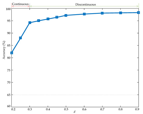 Figure 7 shows that when d is larger than 0.3 (i.e., is is continuous), the identification accuracies are all larger than 95%, while the identification accuracies are below 90% when is is discontinuous. Therefore, only the continuous current case is taken into consideration in this paper.