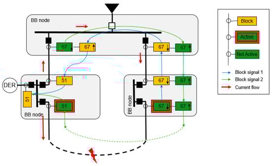 Therefore, in these cases where DERs are present, it is necessary to take in account the islanding mode detection and the currents contribution of DER in the ring faults in order to establish appropriated protection settings. In the migration of the system to an isolated mode, several protections are enabled and others are disabled. As it was comment before, and shown in Figure 6, the ANSI 51/51N protection will be enabled in the IEDs feeders of each busbar where there is a DER, and the ANSI 67/67N protection will be enabled in the rest of IEDs.