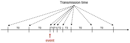 As it was mentioned before, a GOOSE message is based on publish-subscribe pattern. Publishers send GOOSE messages to multicast MAC addresses across the Local Area Network (LAN), and subscribers just listen to what information is in the network and pick the GOOSE messages to which they are subscribed. IEC 61850-8-1 specifies a retransmission scheme to achieve a highly dependable level of message delivery. Figure 9 shows the mechanism of retransmission of GOOSE messages. According to [17], once started, GOOSE messages are published constantly, containing a collection of information called a data set. During configuration, each GOOSE message a max time parameter (T0-seconds) is given between message publications. The messages are published each time one of the data set elements changes or if the max time expires. After a data set element changes, the time of transmission between messages is very short, and a min time parameter (T1-milliseconds) is defined in the GOOSE message. Consequently, the messages are sent very often to increase the likelihood that all subscribers will receive them across the nondeterministic Ethernet. After the initial fast publications, the time of transmission grows longer (T2, T3, Tx) until it reaches max time again.