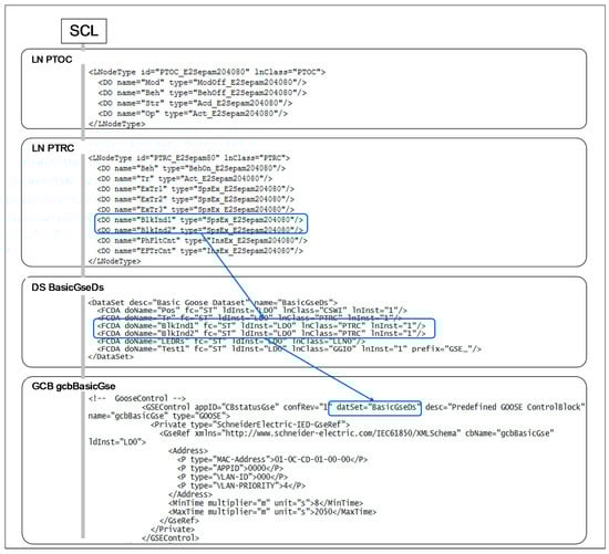 DS (up) and GOOSE Control Block (down) implementation.