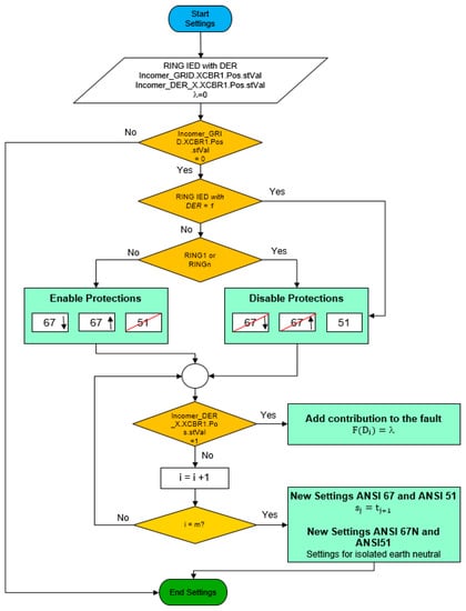 To carry out the adaptive network, the Figure 11 proposes an algorithm to establish this real-time adaptive protection system. It is important to highlight the algorithm have to be implemented only in ring IEDs.