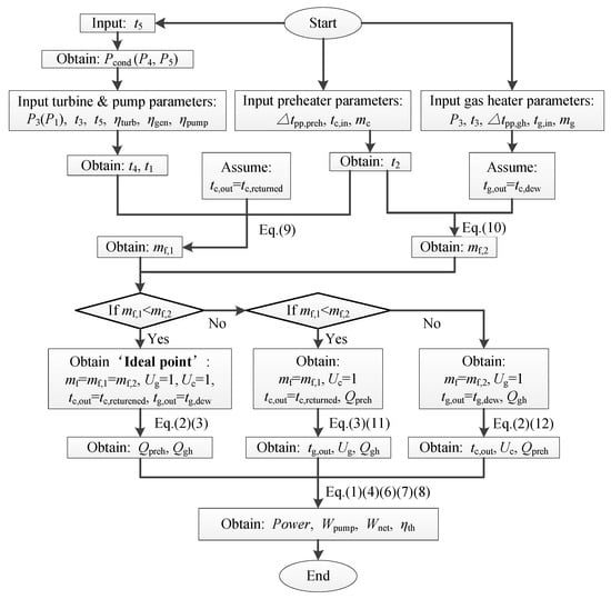 Among them, and are the processes of gaining property of working fluid, which can be realized by REFPROP 9.0 software.