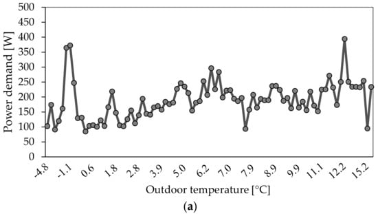 The most important input is time. As can be seen in Figure 9, the power demand changes most obviously during the day. In most cases, two peak demands are particularly visible. The first one occurs during the morning between 7 a.m. and 8 a.m. The second one happens at the end of the day between 5 p.m. and 7 p.m.