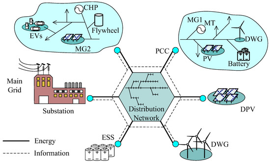 The CIGRE introduced the concept of active distribution network (ADN) in 2008; ADNs have systems in place to control a combination of DERs, defined as generators, loads, and storage, where distribution system operators (DSOs) have the possibility of managing the electricity flows using a flexible network topology. DERs take some degree of responsibility for system support, which depends on suitable regulatory environments and connection agreements [9]. In 2012, due to the increasing penetration of DERs, the concept of ADN was extended to ADS [10]. At present, the basic definition and framework of ADS have been well acknowledged by other important academic organization, such as IEEE and CIRED [11,12].