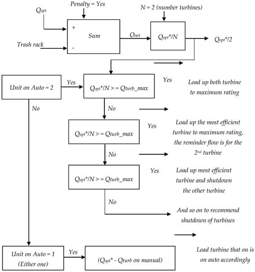 - In case Qopt* ≥ (Qmax/number of turbines), then load both turbine units to their maximum rating, where Qmax is the flow of turbine to produce the maximum power.