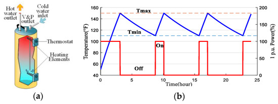 (a) Structure of electric water heater; and (b) traditional on/off control method illustration.