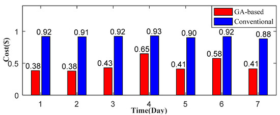 Comparison of daily cost between GA-based and conventional.