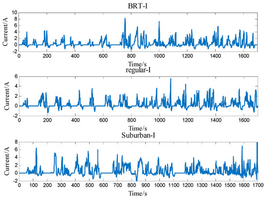 The calculated output current of the cell under the operation conditions of the three Harbin bus cycles is shown in Figure 4. The result of Equations (1)–(10), which is the output current of the cell, was applied to Equation (12).