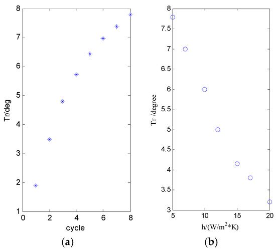 The relation scatter diagram. (a) The relation between Tr and cycle; (b) The relation between Tr and h.