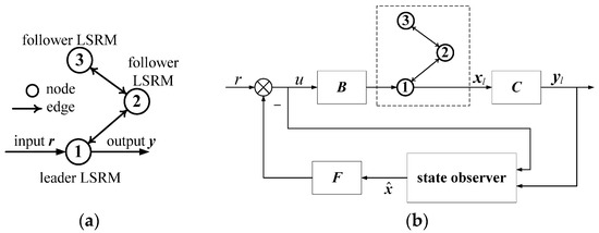 Under Assumptions 1 and 2, the communication topology of the LSRM network is indicated by Figure 2a, and the LSRM nodes of the network with bidirectional communication can be classified as the single leader node and the follower nodes, respectively. is the global feedback tracking controller.