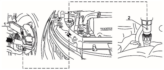 Experiments were performed by the car, Range Rover Evoque, on two roads—road no. 6 (coarsest) and road no. 3 (medium roughness)—with the driver, whose mass was 80 kg, but without passengers or baggage. Acceleration were measured by two accelerometers (damping coefficient 7500 Ns/m), placed in the car, Range Rover Evoque, as shown in Figure 1. The speed of the car was 60 kph. Measurements were performed using industrial equipment, piezoelectric accelerometers (603C01 from PCB Piezotronics, Depew, NY, USA), and a data acquisition device (NI 4431 from National Instruments, Austin, TX, USA). Data were collected using the National Instruments Software Package, LabView 2015. In order to compare experimental and analytical data, the damping force was calculated from an experimentally-observed suspension position: