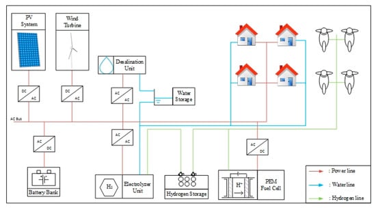 - Kyriakarakos, G.; Dounis, A.I.; Rozakis, S.; Arvanitis, K.G.; Papadakis, G. Polygeneration microgrids: A viable solution in remote areas for supplying power, potable water and hydrogen as transportation fuel. Appl. Energy 2011, 88, 4517–4526. [Google Scholar] [CrossRef]