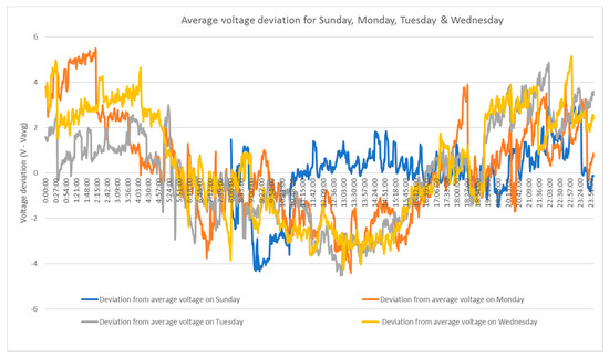 Deviation from average voltage for Sunday, Monday, Tuesday and Wednesday.