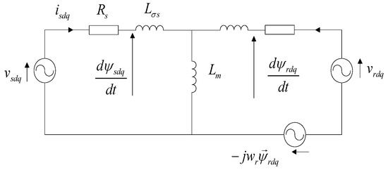 where , are the stator and rotor voltage vectors, , are the stator and rotor resistances, is the rotor angular velocity. Based on Equations (27) and (28), we have: