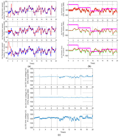 Figure 14 compares the tracking capability of the FERL-based SMC, the ERL-based SMC and the PI approach. It is evident that the proposed method tracks the reference generator curve best. Figure 14b represents the active power tracking curves of the aforementioned three methods.