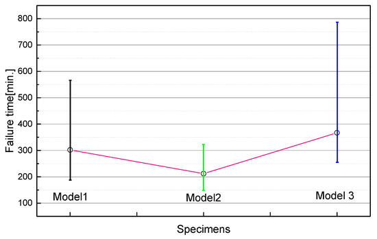 Figure 8 shows the failure times during the electrical tree propagation for 16 specimens in each model. The tree propagation time was discovered to be shortest when there was any void in the needle tip (Model 2), whereas the tree propagation was slowest when there was metallic foreign material (Model 3). In Model 3, it was confirmed that although the electric tree propagation tended to be fast when there was any kind of metallic foreign material during the initiation stage, its propagation from the metallic foreign material until the occurrence of insulation failure proceeded so slowly that the insulation failure occurred later than in any other case.