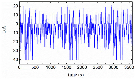 Battery current profile during Federal Urban Driving Schedule (FUDS) cycles.