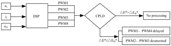 We set the threshold of the loss decrement per-unit value equal to ΔEth*, when the actual per-unit value of the loss decrement is less than or equal to ΔEth*, the inductor current is corresponding to [−ILmax, −ILth] and [ILth, ILmax], and the RCDC control is performed. When the actual per-unit value of the loss decrement is greater than ΔEth*, then the inductor current is corresponding to [−ILth, ILth] and the RCDC control is not performed. ILmax is the peak value of the inductor current, and ILth is the current threshold corresponding to the loss threshold. Figure 9 shows the logic block diagram of the desaturation control for the threshold of the loss decrement per-unit value corresponding to the inductance current zero-crossing threshold value.