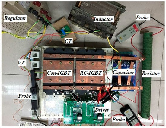 - Huang, X.J.; Ling, C.; Sun, H.; You, X.J.; Xiao, C.J. Working characteristics of Reverse-Conducting IGBT applied in vehicle converters. Semiconduct. Technol. 2017, 5, 363–370. [Google Scholar]