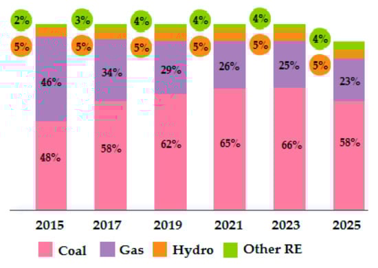 Implementation of renewable energy (RE) projects is expected to reduce the maximum demand and will significantly contribute to the overall generation mix in Malaysia. Based on Figure 2, in terms of capacity, by the year 2020, it is expected that the cumulative annual growth rate of RE capacity, which consists of mini hydro, biomass, biogas, and solar PV plants will be more than 11% or 2080 MW of installed capacity []. The latest forecast of generation fuel mix includes the contribution from RE plants due to the sizable output that is expected in the future. The RE share in the overall fuel mix is projected to gradually increase up to 20% of total energy generated in 2020.
