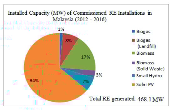 Installed renewable energy (RE) capacity 2012–2016 in Malaysia [].
