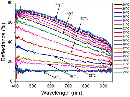The reflectance of 6 wt. % HPC in aqueous solution under various temperature conditions.