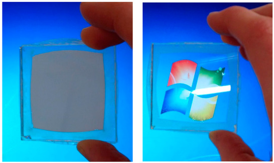 Membrane synthesis was then undertaken by dissolving the gelling agent into magnetically stirred and heated distilled water in quantities so as to make up 1.5 wt. % of the final membrane composition with various concentrations of aqueous HPC then added to the solution. Casting of the HPC/gelling agent solution was then undertaken between two 4 mm thick, 5 × 5 cm sheets of optical white low iron glazing. A 0.5 mm silicone membrane was used as a spacer between the two sheets of glazing resulting in a “truncated” version (no integrated PV) of the proposed CPV smart window system [11,12].