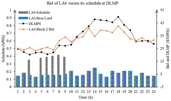 LA6 bid versus DLMP at Bus 6 and its schedule.