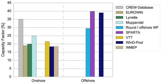 Out of the 24 initiatives considered in this paper, nine initiatives have provided figures on the capacity factor. Three initiatives provided information on offshore WT whereas seven initiatives investigated the capacity factor of onshore WT. As Table 2 and Figure 2 show, there are great differences between onshore and offshore WT and even between the different sources in each category. Due to the clear and unmistakable definition of the capacity factor, the presented numbers are likely to be reliable.