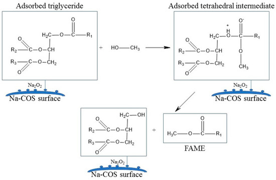 - The transesterification reaction occurred only on the Na-COS surface. The homogeneous transesterification reaction was negligible and thus was not considered.