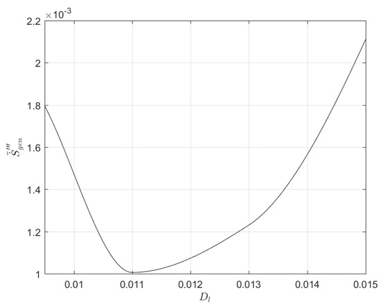 Generated entropy vs. the lamp diameter for Nr = 10 and AR = 1/2.