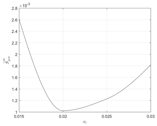 The generated entropy as a function of the gap between lamps for Nr = 10 and AR = 1/2 is plotted in Figure 5. It is clear that xL = 0.02 is the optimal location of the heaters. As the gap between lamps increase, the total distance of the region of the heat sources increases. This causes both components of the entropy production to decrease until the total length of the region is extended to near the natural convection cell at the outlet of the system. At that point, the entropy production due to the friction demolishes suddenly, which causes an increase in the entropy generation. The confrontation of these two effects meets at the point xL = 0.02 in this study.