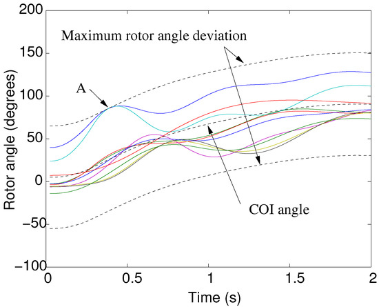 and the deviation of the rotor angles with respect to the COI angle is limited in all synchronous generators: