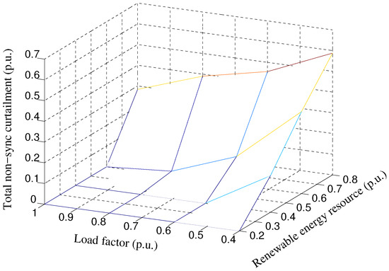 Figure 10). This is calculated in the paper taking the load and the availability of non-synchronous generation as independent variables. Largest curtailments and increases in cost are obtained during periods of small load and large availability of renewable energy resources, as expected. Further analysis can match these data with historical records of load and availability of renewable resources to estimate costs over long periods of time, which will probably benefit from the usual correlation between load and availability of solar energy.