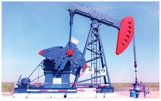 - Shao, Z.M.; Niu, S.G. The study of long stroke pumping unit with hydraulic-chain drive. Oil Field Equip. 2005, 4, 14–16. [Google Scholar]