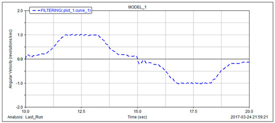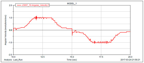 In post-processing, the rotational speed of the output shaft is obtained. We remove the unsteady state of the non-circular gear reversing box when it is just started, take the simulation curve of the output shaft speed of the non-circular gear reversing box when it is working smoothly at 10 s~20 s (as shown in Figure 16).