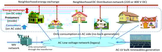None of the solutions presented above include access to a DC internal bus or allow neighbourhood energy exchange other than using the existing DSO network.