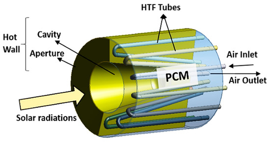 - Giovannelli, A.; Bashir, M.A. Development of a solar cavity receiver with a short-term storage system. Energy Procedia 2017, 136, 258–263. [Google Scholar] [CrossRef]