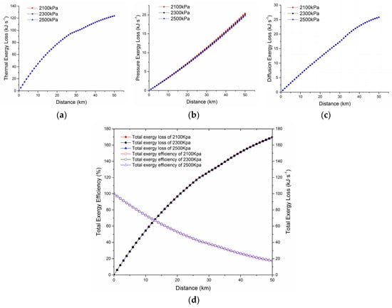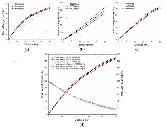4.4. The Analysis of Exergy Loss under Different Conditions of the Transportation Process