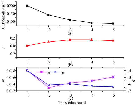 The buyer and seller’s quotations tend to be rational while the market information continues to be disclosed. Thus, the market CEP fluctuates significantly in the early stage and gradually tends to be stable in the latter period, as shown in Figure 8a.
