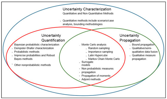 Figure 1 provides a Venn diagram [12] to illustrate the organization within the uncertainty characterization space and lists some of the specific methods for each subset: uncertainty quantification and uncertainty propagation.