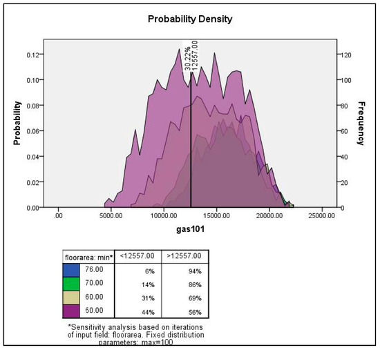 The sample chosen for the Monte Carlo analysis is the 55 observations of Castle bungalows with construction date from 1965 to 1982 and usable floor area from 76 to 100 sqm. The choice of this sample is arbitrary in a way and could be any other sample; however, Castle bungalows are bigger than North East England bungalows, and in broad terms, we would like to confirm that the usable floor area is a sensitive energy parameter in the sub-city areas.